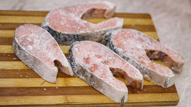 При первом замораживании в мышечных волокнах рыбы образуются мелкие кристаллы льда. Они сохраняют структуру продукта. Но если рыба размораживается и снова попадает в морозильник, кристаллы становятся крупными и разрывают ткани. В результате мясо становится рыхлым, сухим, невкусным. К тому же, при каждом оттаивании активируются бактерии, и повторная заморозка не уничтожает их полностью. Именно поэтому Роспотребнадзор не рекомендует покупать рыбу с признаками неоднократного замораживания. Признак 1. Лед и снежная крошка внутри упаковки Первое, на что стоит обратить внимание, — это количество наледи. Если вокруг рыбы толстый слой льда или внутри пакета сыплется снежная крошка, значит, продукт размораживался. Влага вышла из тканей, замерзла и превратилась в ледяную корку. Чем больше такого инея, тем выше вероятность повторной заморозки. Роскачество в своих рекомендациях отмечает: слой глазури должен быть тонким и равномерным, а не образовывать снежные наросты. Признак 2. Изменение цвета У свежей замороженной рыбы всегда естественный оттенок. У красной рыбы он розовый или оранжевый, у белой — кремовый или слегка прозрачный. Если мясо стало серым, с темными пятнами или выглядит «выцветшим», это верный признак того, что продукт неоднократно подвергался заморозке. Любые погрешности в цвете связаны с разрушением мышечных белков. Признак 3. Структура и упругость Качественная рыба даже после заморозки должна быть плотной. Если слегка надавить на филе или стейк, ямка быстро выравнивается. При повторной заморозке ткани рвутся, и мясо становится рыхлым, расслаивается, крошится. Поэтому это один из самых явных признаков нарушения технологии хранения. Сколько рыбы нужно есть в неделю Признак 4. Запах Даже замороженная рыба сохраняет легкий морской запах или полностью нейтральный аромат. Если вы слышите кислые, затхлые или аммиачные нотки — это сигнал о том, что рыба не просто заморожена повторно, а еще и предварительно испорчена. Запах аммиака появляется при распаде белков, и такую рыбу употреблять нельзя, если, конечно, вы не хотите отравиться. Признак 5. Состояние упаковки Поврежденный пакет, трещины, следы вскрытия — все это повод насторожиться. Если внутри видно жидкость, рыба уже размораживалась. Упаковка качественного продукта должна быть герметичной, без посторонней влаги. Роспотребнадзор также советует проверять маркировку: на ней должны быть указаны дата заморозки, условия хранения и срок годности. Признак 6. Неправильная форма и слипшиеся куски Если вы покупаете филе или стейки из морозилки и видите, что они слиплись в один ком, это часто указывает на повторное замораживание. В норме отдельные куски легко отделяются друг от друга. У правильно замороженной рыбы куски не должны быть «монолитом». Как правильно выбирать замороженную рыбу в магазине? Смотрите на упаковку. Она должна быть прозрачной и без повреждений. Проверяйте маркировку. На ней должны быть написаны дата заморозки и условия хранения. Избегайте толстой наледи. Это главный признак неправильного хранения. Доверяйте проверенным брендам. Лучше переплатить за качественный продукт, чем рисковать здоровьем. Обращайте внимание на запах и внешний вид. Если есть хоть малейшее сомнение, лучше откажитесь от покупки. Повторная заморозка — главный враг рыбы. Она делает 